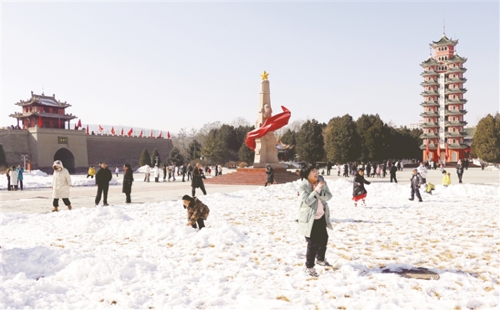 春節(jié)期間,會(huì)寧縣紅軍會(huì)寧會(huì)師舊址迎來大批游客,各地游客在會(huì)寧縣感受紅色文化,厚植家國情懷,歡度假期。圖為游客在紅軍會(huì)寧會(huì)師舊址游玩的場...